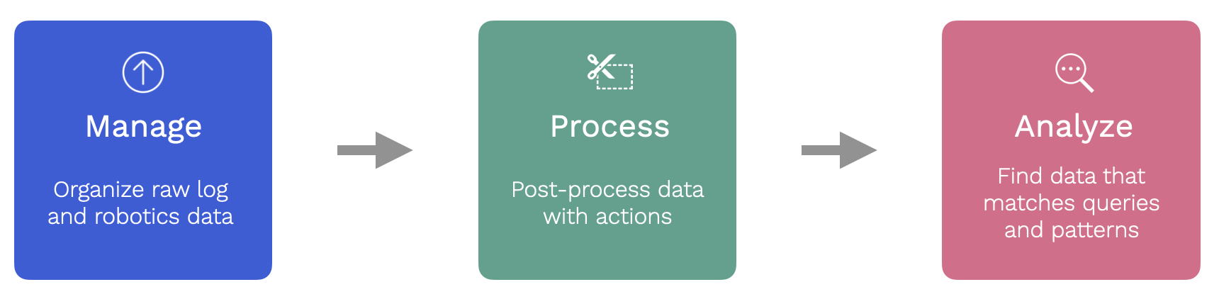 Log files are ingested using specialized actions. Roboto includes built-in ingestion actions for common robotics formats like ros, px4 and parquet. It’s also possible to create ingestion actions for custom log formats too.